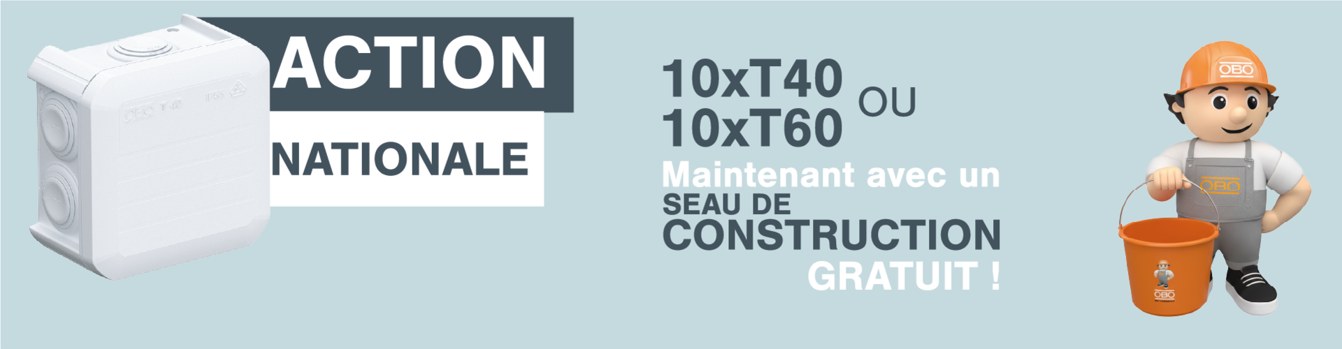 Action temporaire : Achetez un seau rempli ! Recevez maintenant un seau de chantier OBO robuste offert à l'achat de 10x T40 ou 10x T60 (conditionnés directement dans le seau). C'est l'occasion idéale de compléter votre stock avec une qualité éprouvée tout en profitant d'un cadeau pratique pour vos chantiers.