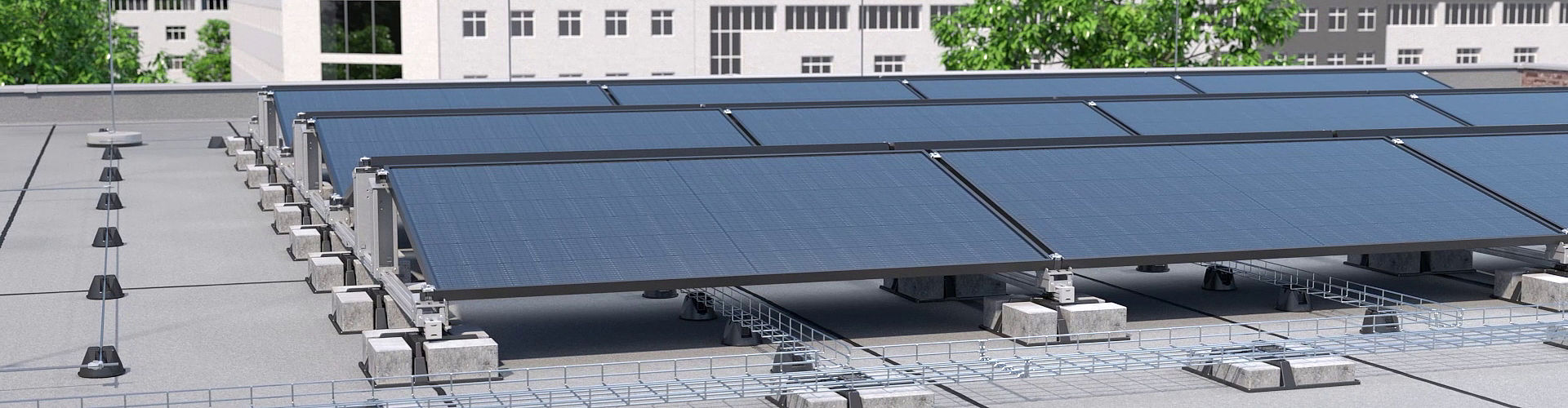 Het Magic PV Flat Pro-systeem voor platte daken maakt dankzij de Magic-technologie gereedschapsloze montage mogelijk. Hoogwaardige materialen en maximaal belastbare systeemcomponenten vormen de basis van dit duurzame montagesysteem. Een systeem voor de kabelinstallatie met draadgoten kan worden geïntegreerd.