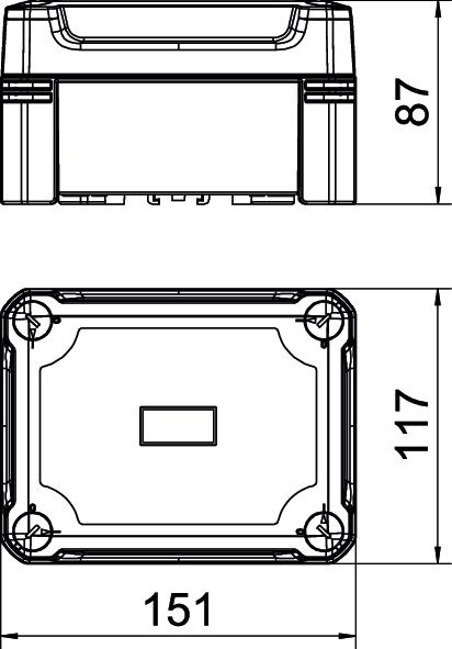 Avec couvercle oui Coloris gris / transparent Convient pour application extérieur oui Couvercle transparent oui Dimension 150x116x86 Dimension intérieure 137x105x68 mm Empreinte CO2 (GWP) du berceau à la porte 1,7376 kg CO2e / 1 Pièce Équipement Rail de support Fixation du couvercle vissé forme rectangulaire Hauteur 86 mm Indice de protection IP67 Indice de protection code IK IK09 Largeur 117 mm Longueur 151 mm Matériau polycarbonate Plage de températures d’utilisation max. 60 °C Plage de températures d’utilisation min. -5 °C Possibilité d'extension non Résistant aux intempéries oui - Tous les types