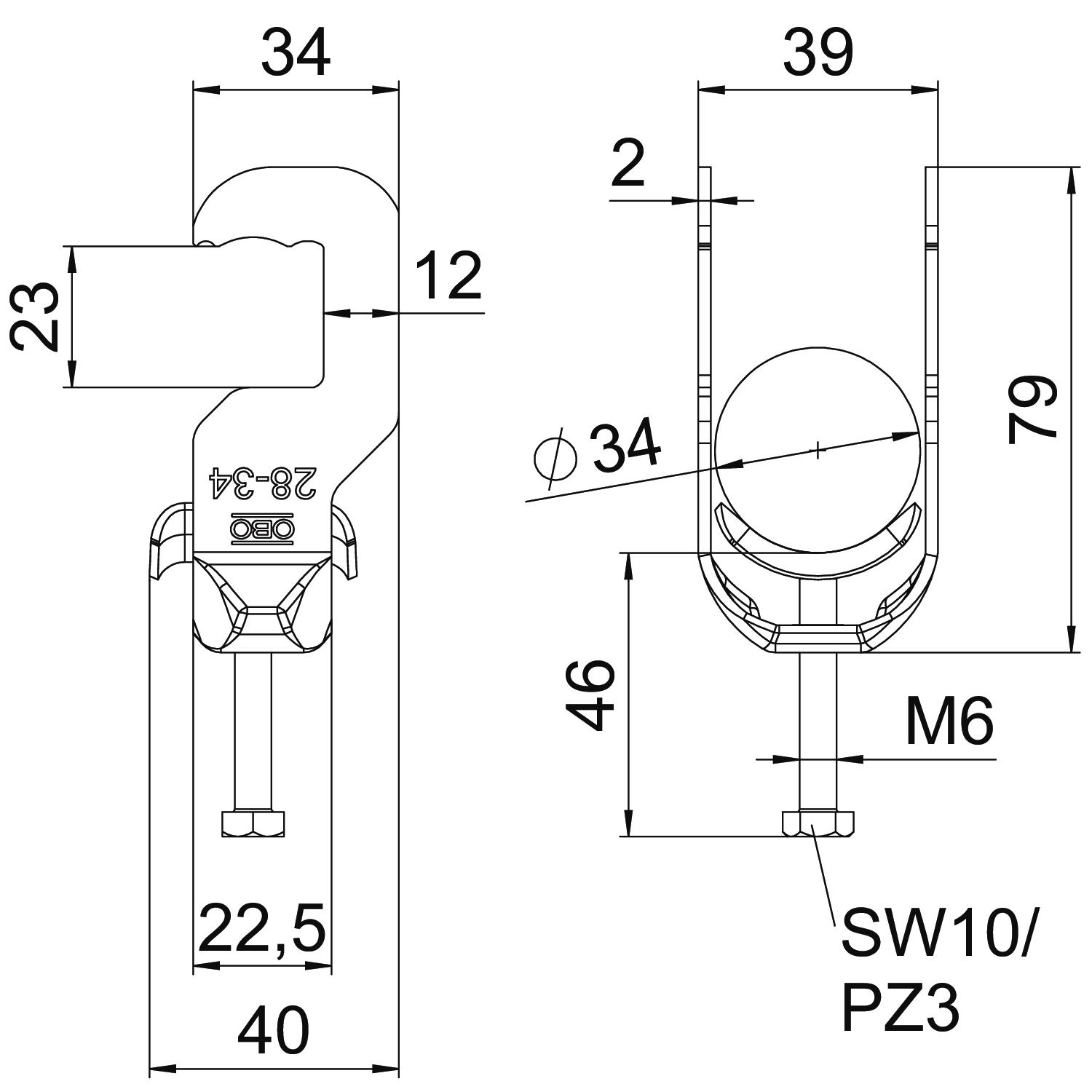 Avec contre-plaque non Avec patin de pression en plastique non Avec patin de pression métallique oui Cote A 34 mm Cote B 39 mm Cote C 41 mm Cote L 46 mm Cote t 2 mm Dimension 28-34 Dimension E 12 mm Dimension G (mm) M6 Dimension H 79 mm Empreinte CO2 (GWP) du berceau à la porte 0,3025 kg CO2e / 1 Pièce Épaisseur de tôle 2 mm Filetage M8 Hauteur 79 mm Largeur 41 mm Longueur 33,5 mm Longueur dimension extérieure 41 mm Matériau acier Matériau de la plaque Acier Max. Couple de serrage 3 Nm Nombre de câbles/tubes 1 Ouverture 10 mm Plage de serrage D max. 34 mm Plage de serrage D min. 28 mm pour diamètre de tube max. 34 mm pour diamètre de tube min. 28 mm Sans halogène oui Supplément matériau acier Supplément surface galvanisé à chaud Surface galvanisé à chaud par trempage Type de montage Profilé rond - Tous les types