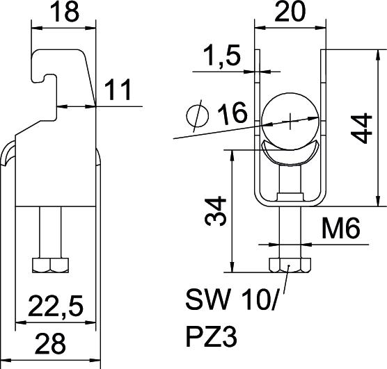Description du produitBride de fixation avec pied U, plaque de pression en métal avec bords arrondis pour la protection des câbles. Pour montage vertical et horizontal d’1 câble individuel sur des rails profilés en C. Pour une ouverture de 18 – 22 mm. Avec vis à 1 filet sur plaque de pression, tête de vis hexagonale universelle SW10, avec fente et empreinte cruciforme. Convient au montage en intérieur et en extérieur. L’utilisation d’une contre-plaque est recommandée.