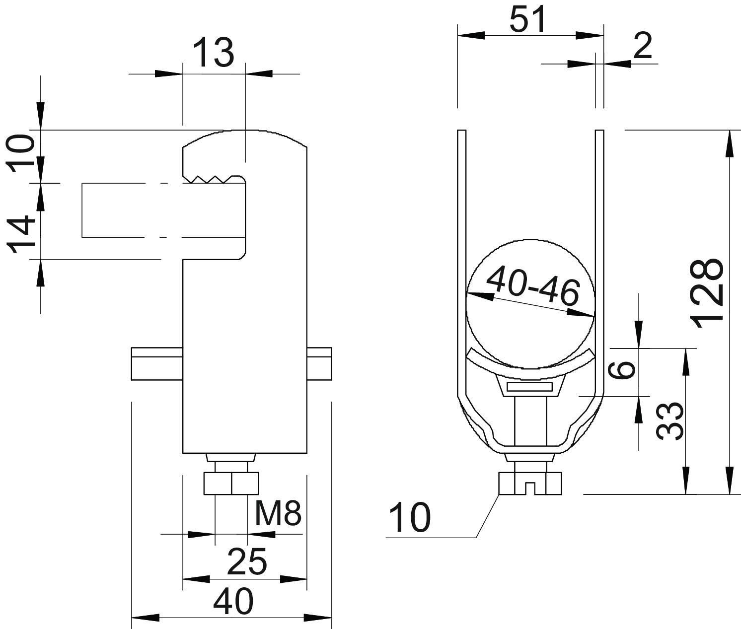 Avec contre-plaque non Avec patin de pression en plastique oui Avec patin de pression métallique non Cote A 25 mm Cote B 51 mm Cote C 40 mm Cote L 33 mm Cote t 2 mm Cote x 6 mm Dimension 40-46mm Dimension E 13 mm Dimension G (mm) M8 Dimension H 128 mm Empreinte CO2 (GWP) du berceau à la porte 0,3444 kg CO₂e / 1 Pièce Matériau acier Matériau de la plaque Plastique Max. Couple de serrage 5 Nm Nombre de câbles/tubes 2 Plage de serrage D max. 46 mm Plage de serrage D min. 40 mm pour 1 câble H 80 mm pour 1 câble L 26 pour 2 câbles H 128 mm pour 2 câbles L 33 mm pour 3 câbles H 177 mm pour 3 câbles L 45 mm pour diamètre de tube max. 40 mm pour diamètre de tube min. 40 mm Qualité du matériau de la plaque Polypropylène Résistant aux chocs non Sans halogène oui Supplément matériau acier Supplément surface galvanisé à chaud Surface galvanisé à chaud par trempage Type de montage Profilé plat - Tous les types