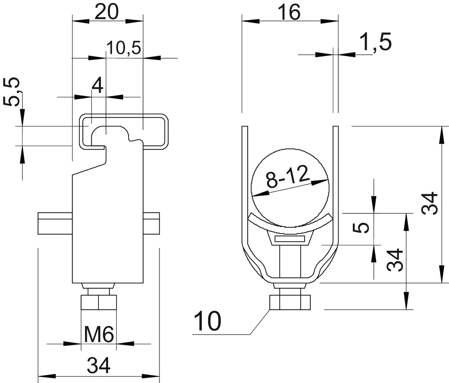 Avec contre-plaque non Avec patin de pression en plastique oui Avec patin de pression métallique non Cote A 20 mm Cote B 16 mm Cote C 34 mm Cote L 34 mm Cote t 1,5 mm Cote x 5 mm Dimension 8-12mm Dimension G (mm) M6 Dimension H 34 mm Empreinte CO2 (GWP) du berceau à la porte 0,0537 kg CO₂e / 1 Pièce Matériau acier Matériau de la plaque Plastique Max. Couple de serrage 3 Nm Nombre de câbles/tubes 1 Plage de serrage D max. 12 mm Plage de serrage D min. 8 mm pour 1 câble H 34 mm pour 1 câble L 34 pour 2 câbles H 49 mm pour 2 câbles L 47 mm pour 3 câbles H 65 mm pour 3 câbles L 47 mm Pour rail avec largeur de fente (avec intervalle) max. 12 mm Pour rail avec largeur de fente (avec intervalle) min. 11 mm Qualité du matériau de la plaque Polypropylène Résistant aux chocs non Sans halogène oui Supplément matériau acier Supplément surface galvanisé à chaud Surface galvanisé à chaud par trempage Type de montage Rail profilé - Tous les types