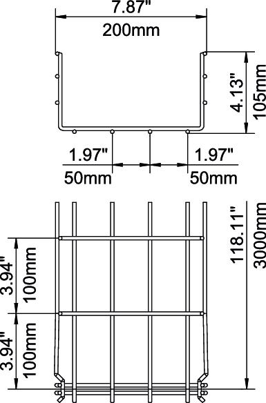 Aucun raccord supplémentaire n'est nécessaire pour le chemin de câbles en treillis, il est simplement emboîté. Le maillage est de 50 x 100 mm.