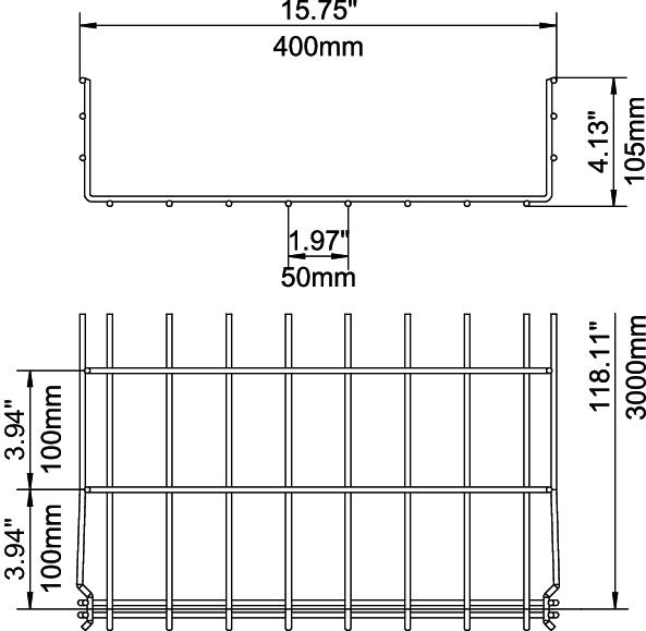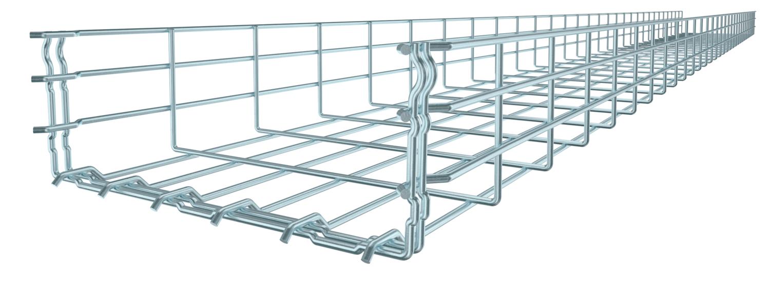 Aucun raccord supplémentaire n'est nécessaire pour le chemin de câbles en treillis, il est simplement emboîté. Le maillage est de 50 x 100 mm.