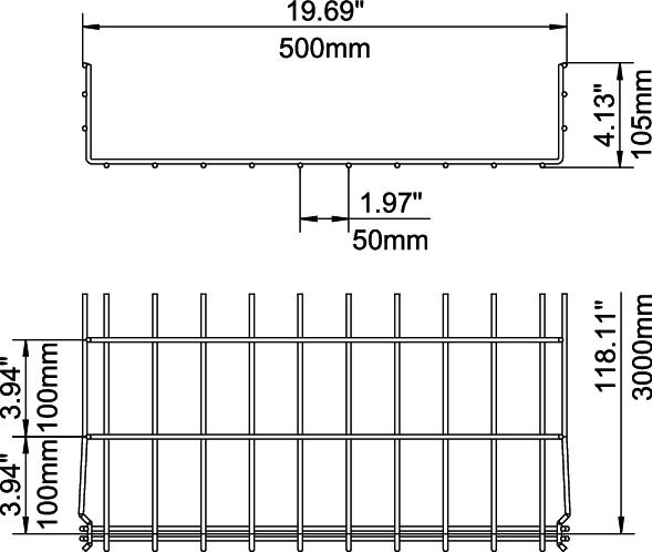 Aucun raccord supplémentaire n'est nécessaire pour le chemin de câbles en treillis, il est simplement emboîté. Le maillage est de 50 x 100 mm.