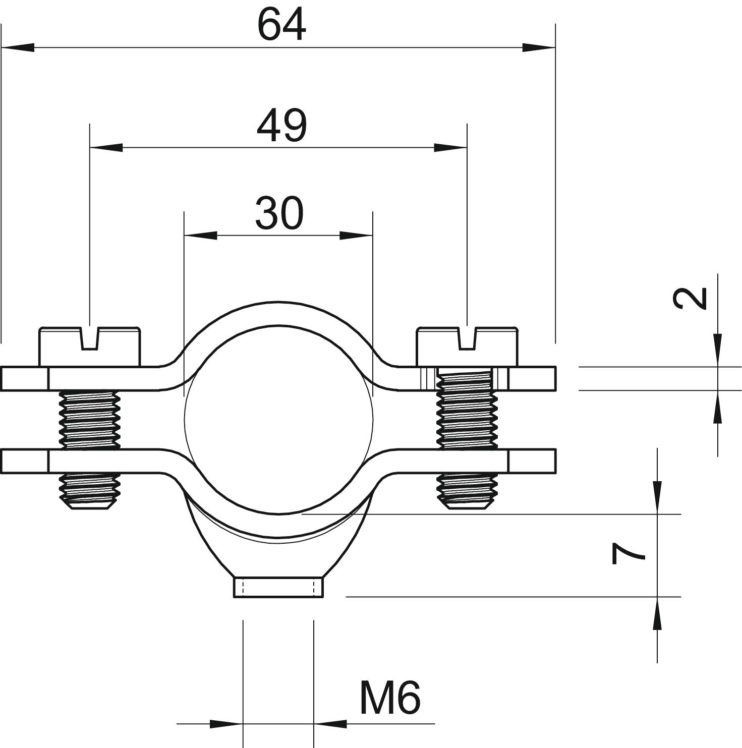 Avec gaine en matière plastique non Convient pour les espaces coupe-feu non Cote A 64 mm Cote B 49 mm Cote D 30 mm Cote t 2 mm Dimension 25-30mm Dimension d min. 30 mm Dimension du trou M6 mm Empreinte CO2 (GWP) du berceau à la porte 0,0867 kg CO2e / 1 Pièce épaisseur du matériau 2 mm Longueur 64 mm Matériau acier Modèle fermé Nombre de câbles/tubes 1 Plage de serrage D max. 30 mm Plage de serrage D min. 25 mm Résistant aux UV oui Sans halogène non Surface galvanisé Type de fixation Trou de vis Vis M5 x 14 - Tous les types