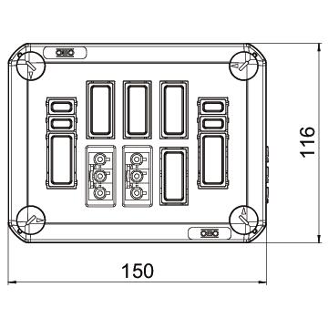 Couvercle enfichable pour l’obturation de boîtes de dérivation, équipé de 2 à 6 systèmes enfichables Wieland GST18, précâblé avec bornes à levier. Couvercle avec fermeture rapide, plombable. Matériau sans halogène, résistant aux UV. Ignifugé selon DIN EN 60695-2-11, Température d’essai 650 °C. Résistance à la frappe IK07 à température ambiante. Indice de protection IP30.