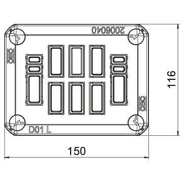Description du produitCouvercle enfichable pour l’obturation de boîtes de dérivation, équipé de 8 ouvertures défonçables pour les prises de raccordement de Wieland et Wago, de 3 à 5 pôles. Couvercle avec fermeture rapide, plombable. Matériau sans halogène, résistant aux UV. Ignifugé selon DIN EN 60695-2-11, Température d’essai 650 °C. Résistance à la frappe IK07 à température ambiante. Indice de protection IP30.