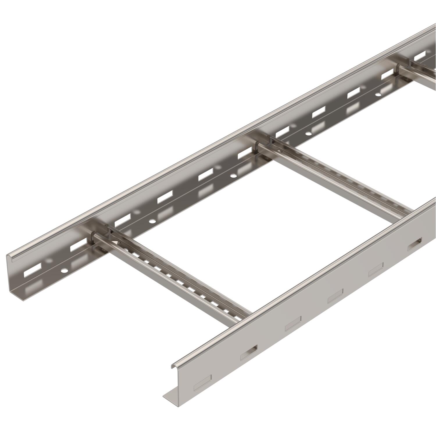 Description du produitÉchelle à câbles d'une hauteur latérale de 60 mm avec échelons soudés à profilé C30 ouvert vers le haut. Longeron latéral enroulé pour le renforcement et la protection des bords. La fixation sur console s'effectue avec des pièces de serrage de type LKS 40. La fente de l'échelon mesure 16,5 mm. La bride de fixation correspondante est de type 2056.