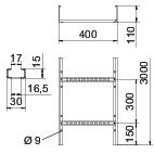 Description du produitÉchelle à câbles avec longeron latéral perforé d'une hauteur latérale de 110 mm, avec échelons rivetés à profilé en C ouvert vers le haut.