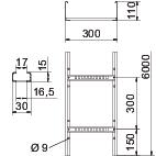 Description du produitÉchelle à câbles avec longeron latéral perforé d'une hauteur latérale de 110 mm, avec échelons rivetés à profilé en C ouvert vers le haut.