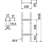 Description du produitÉchelle à câbles avec ailes perforée d'une hauteur de 60 mm, avec échelons VS rivetés (profilé en C) ouverts vers le haut.