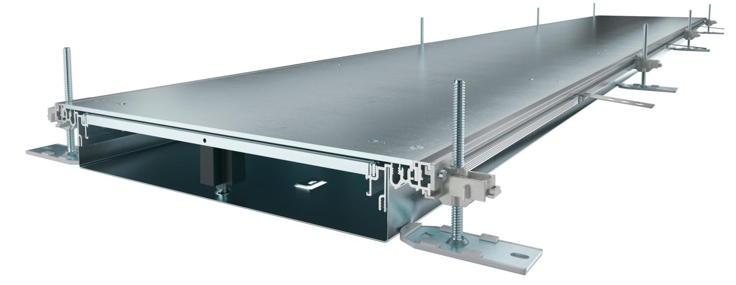 Description du produitÉlément de conduit prêt à monter avec 3 couvercles pleins pour l'installation de câbles, composé d'un socle de conduit (plaque de sol avec profilés latéraux et profilés d'insertion de revêtement de sol) et d'un couvercle de conduit. Plaque de sol avec pattes de maintien pour le montage auto-connectable des séparateurs. 6 équerres de fixation réglables en hauteur, 6 pattes d'ancrage pour béton et 3 garniture d'étanchéité pour couvercle (pour les largeurs de conduit 200 et 300) ou 3 supports de garniture de couvercle réglables en hauteur (pour les largeurs de conduit 400, 500 et 600) font partie des fournitures. À la livraison, le couvercle du conduit est vissé et les éléments à enclencher sont montés.