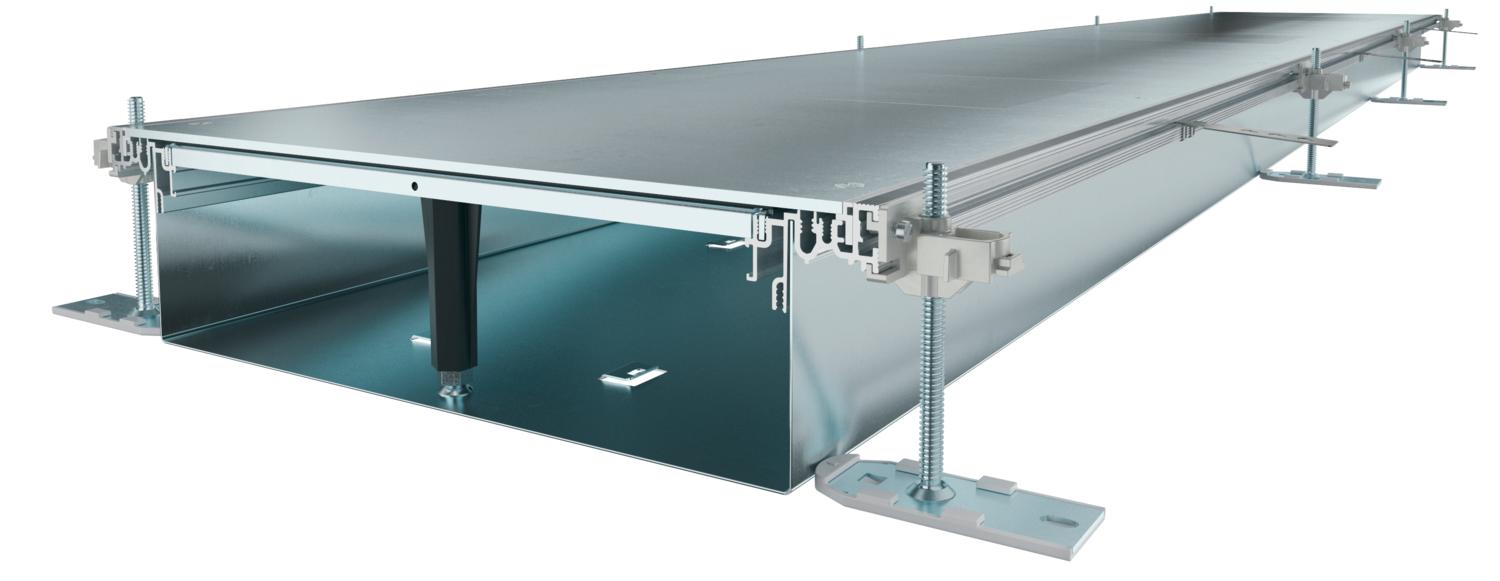Description du produitUnité de conduit de sol affleurant prête à monter avec 3 ou 6 couvercles d'appareillages pour l'installation de câbles et le montage d'unités d'appareillage de taille nominale 6, composée d'un élément inférieure de conduit (plaque de sol avec profilés latéraux et profilés d'insertion de revêtement de sol) et d'un couvercle de conduit avec ouverture de montage obturée. Plaque de sol avec pattes de maintien pour le montage auto-connectable des séparateurs. 6 équerres de fixation réglables en hauteur, 6 chevilles à expansion pour béton et 3 embouts d'étanchéité de couvercle pour largeur nominale de conduit 300 ou 3 supports de contact de couvercle pour largeur nominale de goulotte 400 et 6 supports de contact de couvercle pour largeurs nominales de conduit 500 et 600 sont fournis. À la livraison, les couvercles de goulotte sont vissés.