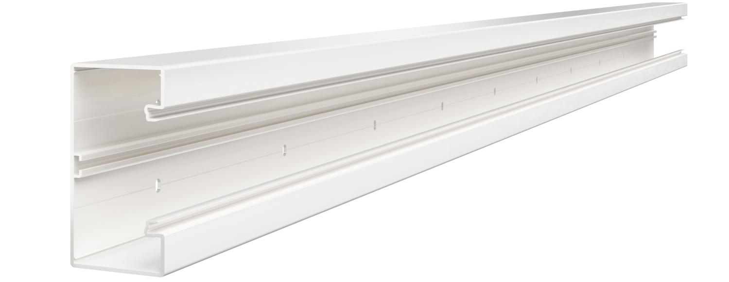 Description du produitGoulotte d'appareillage GKH en PC/ABS sans halogène pour montage direct au mur ou sur des consoles murales. La fixation s'effectue par l'intermédiaire des perforations situées dans la goulotte. La goulotte d'appareillage GKH est équipée d'un profilé en C pour accueillir un séparateur en plastique. Dans les boîtiers d'appareillage de la gamme 71GD... tous les programmes d'interrupteurs, à vis ou à griffe, peuvent être installés ainsi que les appareillages type Modul 45. L'ouverture du système est de 76,5 mm. Une paire de raccords est prémontée d'un côté en fonction de la longueur de goulotte.