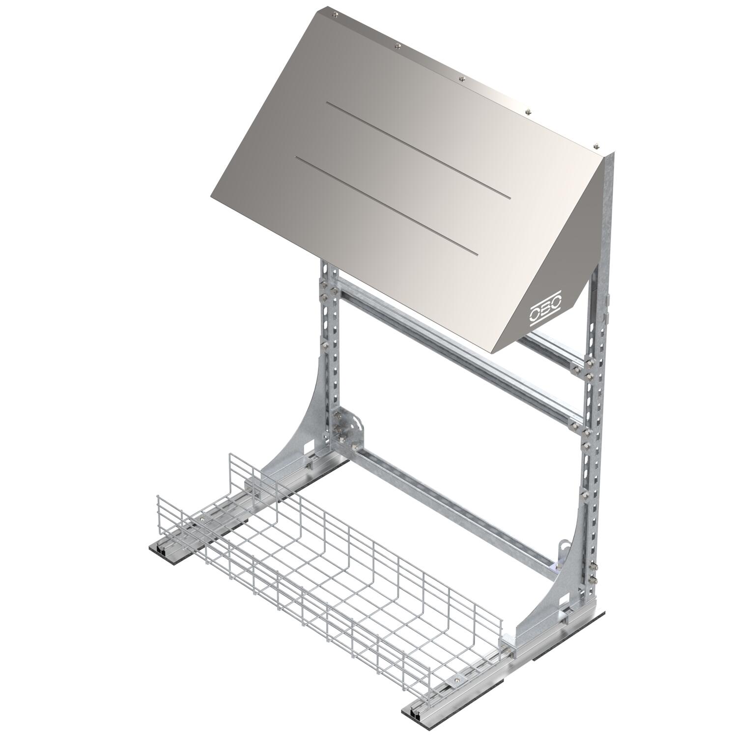 Description du produitInverter frame for the protected installation of several inverters for PV systems on flat roofs. Free-standing. Mesh cable tray included for ballasting and for the routing of cables.