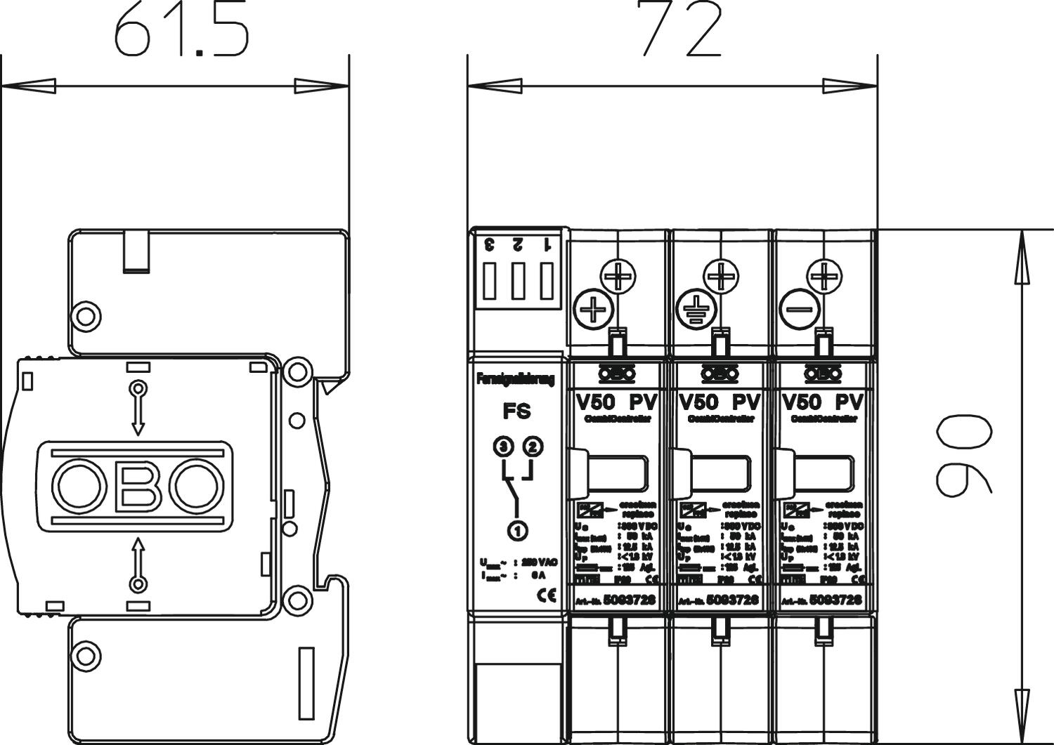 Description du produitParafoudre combiné V50 type 1+2, pour installations photovoltaïques