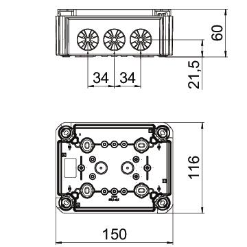avec blindage non Avec couvercle non Coloris noir graphite ; RAL 9011 Couvercle non transparent Couvercle transparent non Dimension 150x116x62 Entrée par le fond oui Équipement sans Fixation du couvercle vissé forme rectangulaire Hauteur 62 mm Indice de protection IP30 Indice de protection code IK IK07 Juxtaposable oui Largeur 116 mm Longueur 150 mm Maintien en fonction sans Matériau polypropylène Max. Section du conducteur 10 mm² Modèle testé antidéflagrant non Plage de températures d’utilisation max. 60 °C Plage de températures d’utilisation min. -5 °C Plombable oui pour diamètre de tube 16/19 mm Pour poussières explosibles sans Pour zone explosible sans Pour zone explosive sans résistant aux flammes selon la norme VDE 0471/DIN 695 partie 2-1, température de test 650 °C Résistant aux intempéries non Sans halogène oui Tension d'isolation de mesure Ui 500 V Type de l'entrée Câble/tube Type de montage Montage au mur/plafond Type du passage sur le boîtier Empreinte défonçable - Tous les types