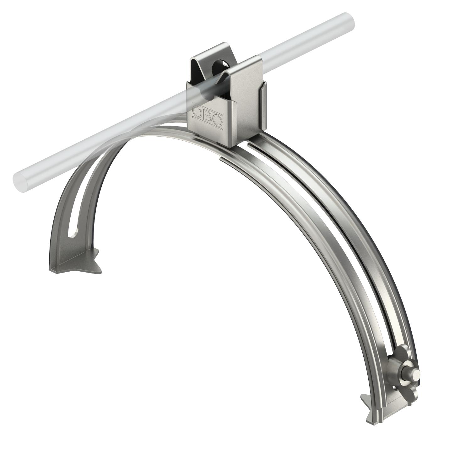 Ajustement Rd 8 mm Application Faîte/arête Diamètre du conducteur max. 8 Diamètre du conducteur min. 8 Dimension 8mm Empreinte CO2 (GWP) du berceau à la porte 0,6183 kg CO2e / 1 Pièce Hauteur de montage 20 mm Matériau acier inoxydable 1.4301 Plage de serrage D max. 260 mm Plage de serrage D min. 185 mm Type de fixation du conducteur avec collier à clip Type de montage tendable - Tous les types