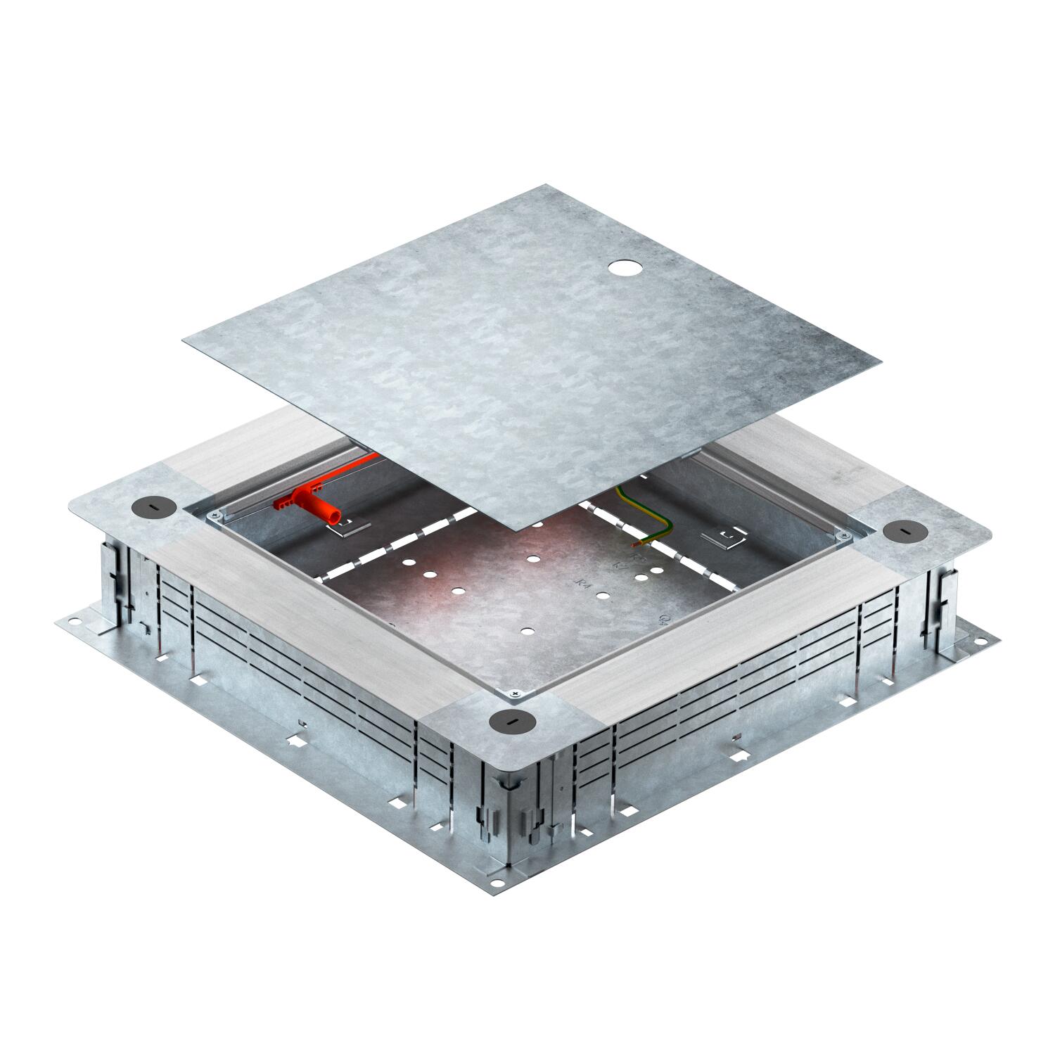 Description du produitPrise de tirage et de dérivation pour goulottes d’installation sous chape avec parois latérales en tôle d’acier. Pour le montage d’unités de montage dans le couvercle de montage (à commander séparément). Possibilité de nivellement continu à une hauteur de chape de 80 à 160 mm avec le nivellement rapide. La chape peut être coulée de manière affleurante à l’arête de retrait de la chape. Avec possibilité de découplage acoustique une fois la chape coulée et utilisation possible avec les accessoires pour applications pour charges lourdes. Entrée de câbles et de conduites avec la goulotte EÜK en 2 parties.