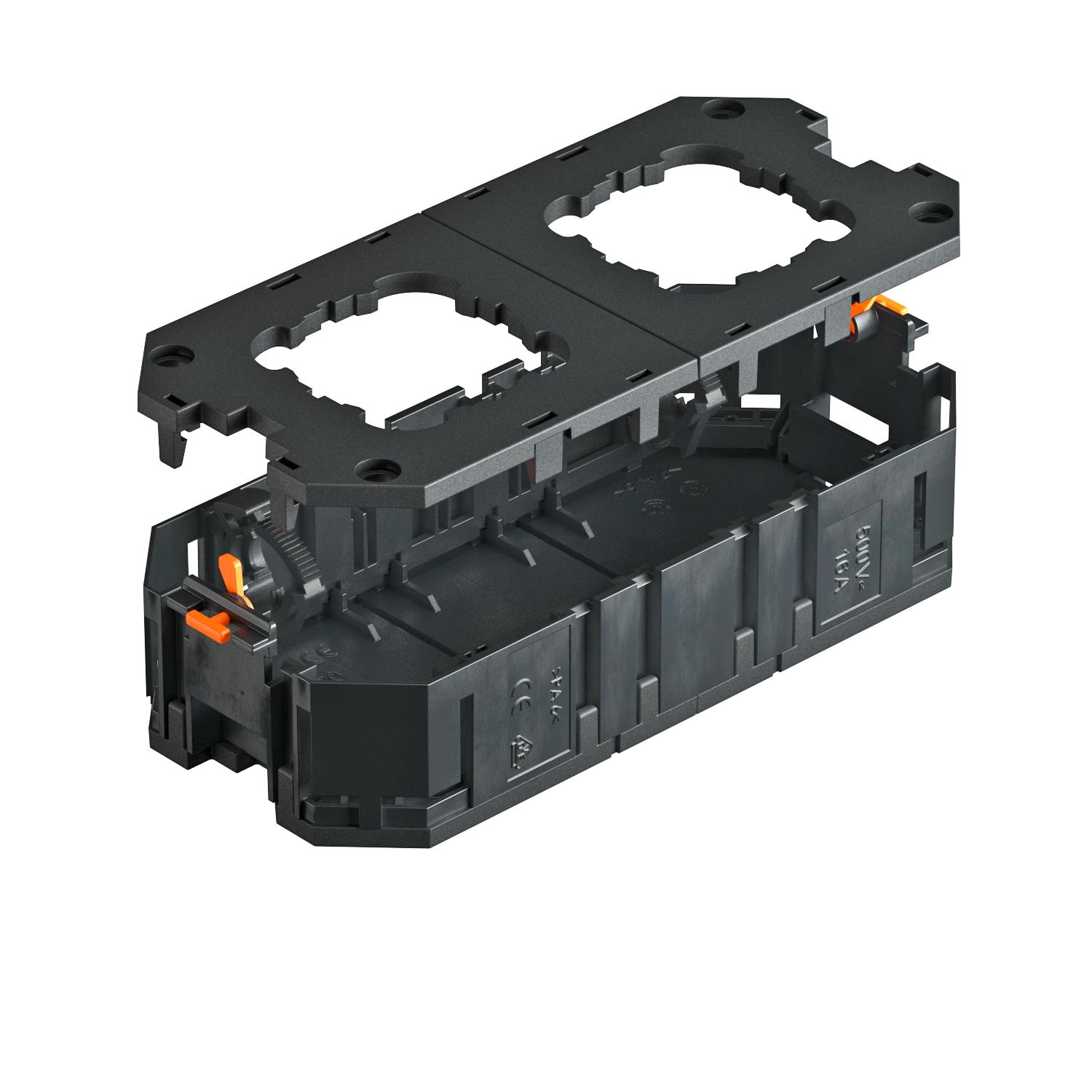 Description du produitSupport universel avec deux décharges de traction pour le montage de l'installation électrique dans des boîtiers de sol de tailles nominales 2, R4, 4, 6 et R7.