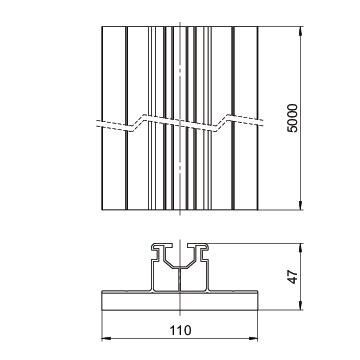 Dimension 5000x110x47 Goulotte de câbles en option non Goulotte de câbles intégrée non Hauteur 47 mm Largeur 110 mm Longueur 5000 mm Matériau aluminium Module d’inertie Wx 3210 mm³ Module d’inertie Wy 3840 mm³ Surface nu - Tous les types