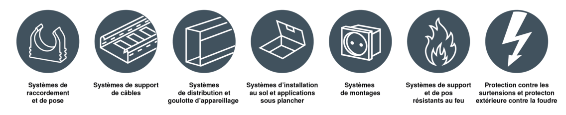 De la gestion des câbles aux systèmes de sécurité; vous trouverez directement les informations techniques et les références correctes pour une préparation de travail et une commande rapides.