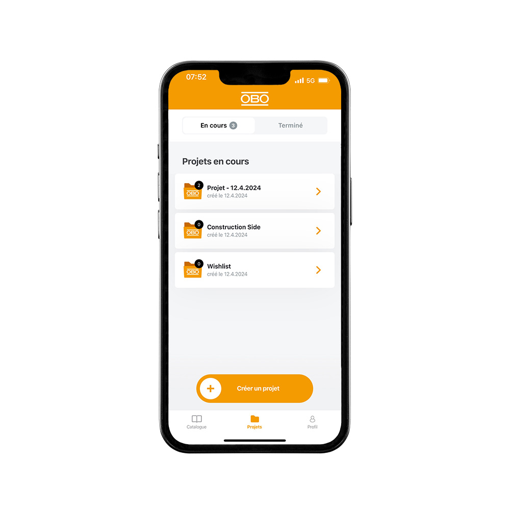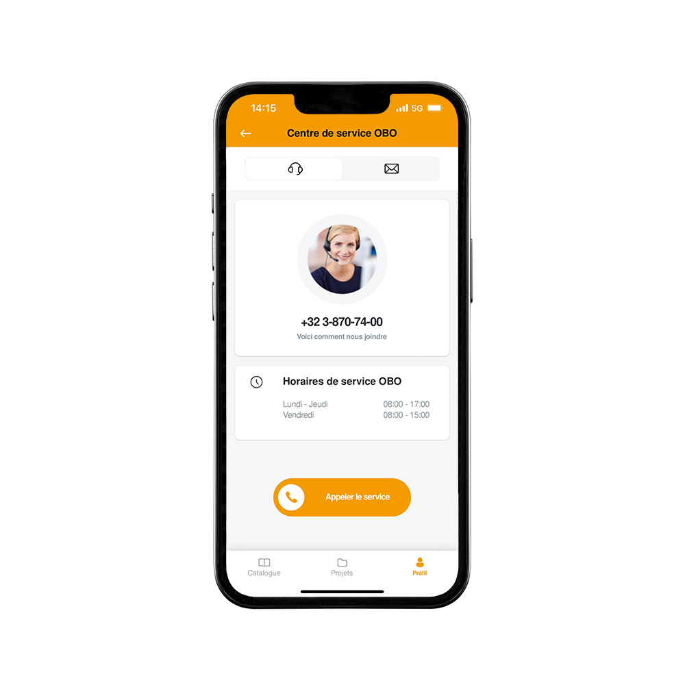 l'application mobile pour vous simplifier vos installations électriquesLa nouvelle application myOBO vous permet d’accéder à tout moment,où que vous soyez, à tous les catalogues produits OBO – même hors ligne, sans connexion Internet. Vous avez la possibilité de créer et de gérer des projets, de les exporter et de transférer directement les références par e-mail. L’application myOBO est également votre lien direct avec le service client d’OBO : vous pouvez nous joindre par le biais d’un e-mail ou par téléphone si vous avez besoin d’aide ou de réponses à vos questions. Une application mobile pour vous simplifier vos installations électriques au quotidien !