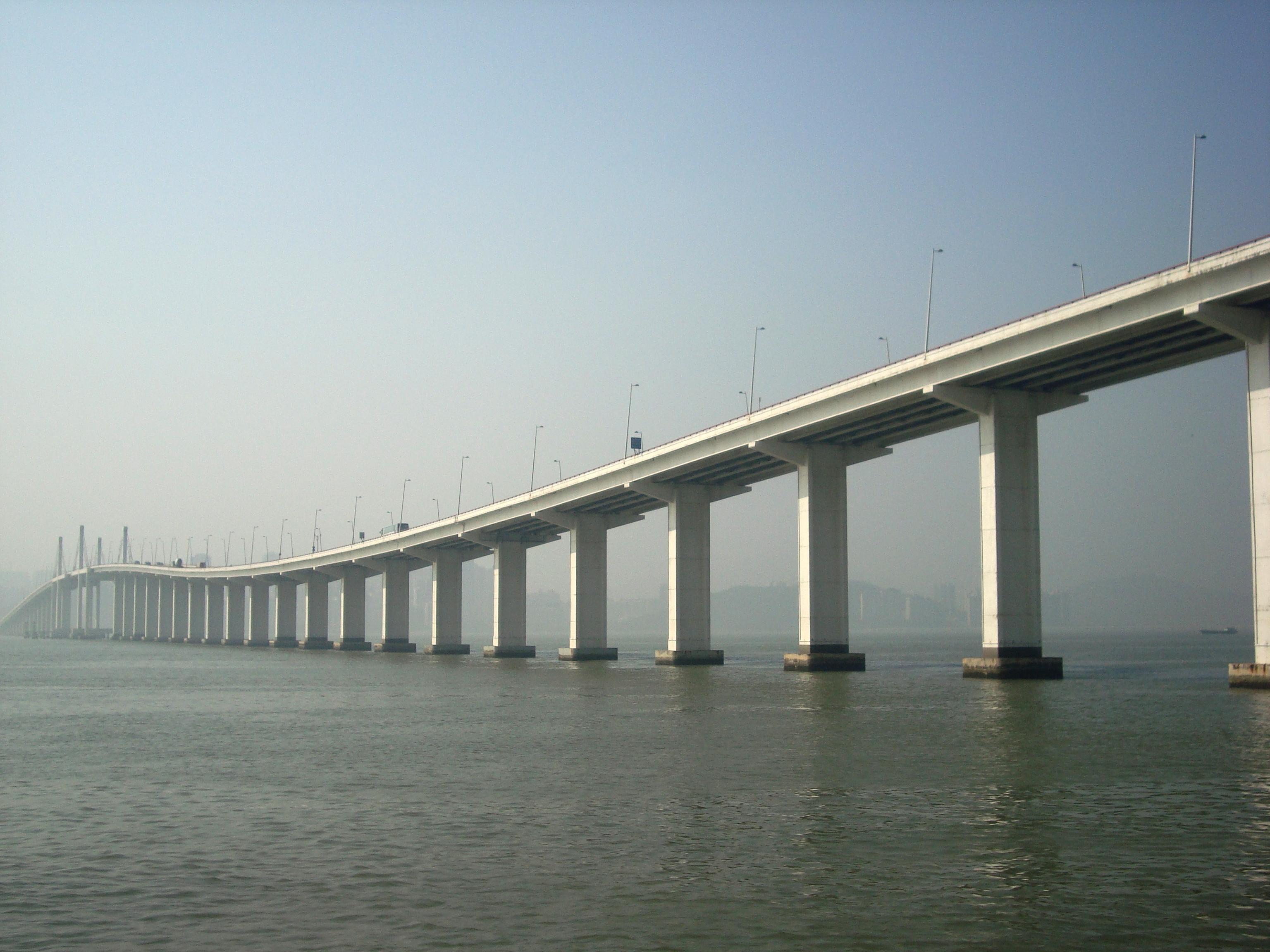 Une section de quinze kilomètres est désormais considérée comme le plus long pont en acier du monde. En outre, un tunnel sous-marin de 6,7 kilomètres appartenant également au projet est non seulement le plus long, mais aussi, à près de cinquante mètres sous la surface de l'eau, le plus profond.