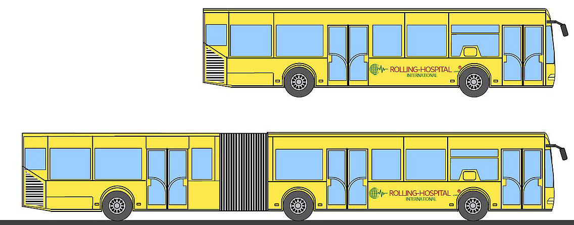 In totaal 6 gelede bussen van 18 meter lengte en 6 andere bussen van 12 meter lang worden als mobiele opwarmbussen gebruikt. De Oekraïense burgers hebben hier dan de mogelijkheid, zich op te warmen en een warme kop soep of warme drank te nemen. Een via een satelliet aangesloten TV-toestel zorg ervoor, dat zij zich kunnen informeren en het nieuws kunnen volgen. Via een aantal USB-contactdozen kunnen smartphones en andere mobiele apparaten worden opgeladen. Een gasfornuis inclusief gevulde gasflessen en een voortent behoren ook tot de uitrusting. Zo kan buiten gekookt worden waarbij de tent als windscherm dient. De in de bus aanwezige stoelen zijn behouden gebleven. Daardoor heeft elke opwarmruimte 37 tot 52 zitplaatsen. Dat heeft bovendien als voordeel, dat de bussen, wanneer de situatie in Oekraïne weer is ontspannen, zonder veel werk weer voor het openbare personenvervoer kunnen worden gebruikt.