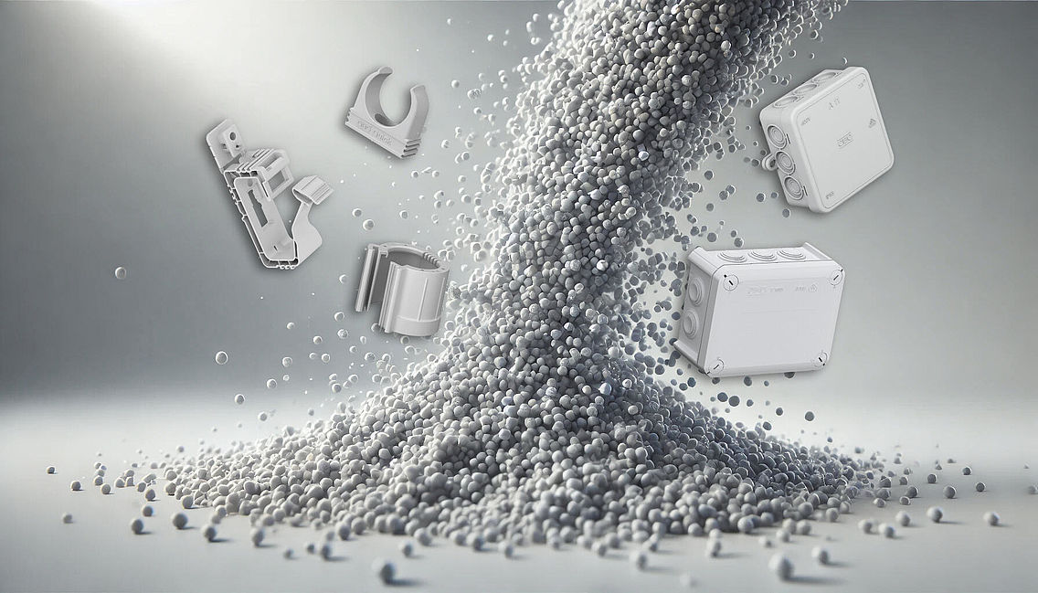 The products have a proven, improved CO2 balance of up to 60 % and contain between 50 and 70 % recycled material. Recyclates originate from the waste of plastics processing companies. This plastic waste is not simply disposed of, but processed, sorted and cleaned, so that at the end of this process, the result is sorted plastic waste that is ready for recycling. This is then purchased by companies such as OBO and processed into products such as the EcoLine.