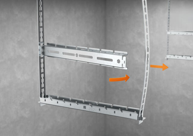 As an additional safety measure for the mesh cable tray and to secure cable trays and ladders to the support rail, a special quick fastener can be used. This quick fastener is hooked into the support rail and can be bent over the cable tray or ladder rail by hand without the need for tools, or with pliers. Alternatively, the classic screw connection is also possible, as integrated slots in the support rail allow conventional fastening of cable trays and cable ladders.