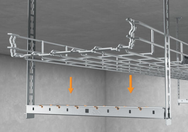 Thanks to the multifunctional design of the MagicFix support rail, the suspension can be installed both conventionally with threaded rods or modularly using suspension strips. Both variants can be used to create various pendulum and centre suspensions as well as single-layer and multi-layer installations. In addition, the MagicFix support rail is also suitable for spaced mounting of mesh cable trays and cable trays on the floor. This high degree of flexibility combines the advantages of modern, modular and time-saving mounting systems with the proven safety and load-bearing capacity of traditional screw connection techniques.