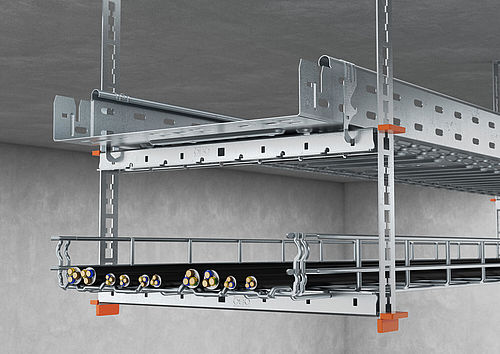 - MagicFix support rail ‒ for the laying of lighter cable tray systems with patented Magic fastener for screw- and tool-free mounting of mesh cable tray systems