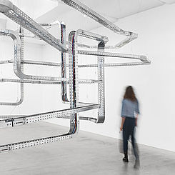 Before the current exhibition in Zurich, Eva and Franco Mattes exhibited the RKS-Magic cable trays internationally in Los Angeles, Milan, Montreal and Berlin. In the installation, the cable trays not only stand out through their design and elegance but also through their high level of flexibility and stability.