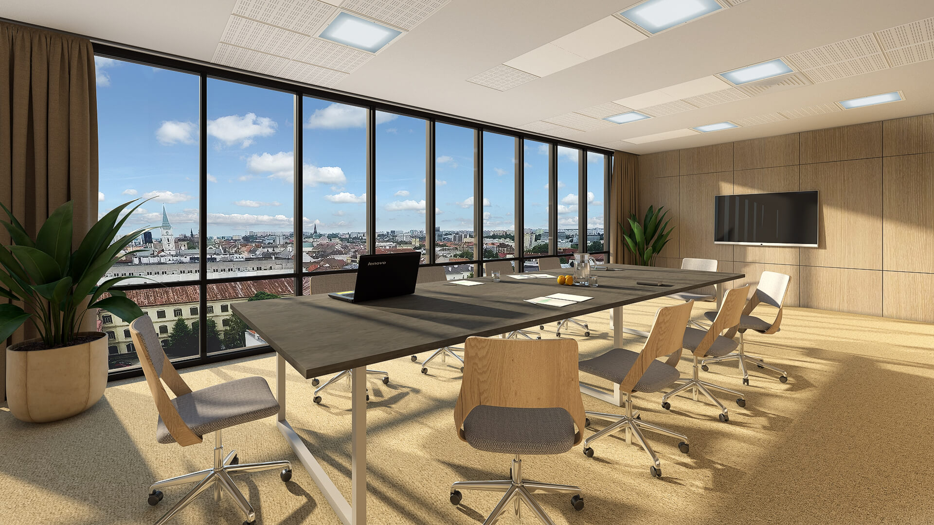 Het type kanaalsysteem gelijk met de afwerkvloer OKA-W van OBO Bettermann is te vinden in het gehele vijf verdiepingen tellende kantoorgebouw in Košice.