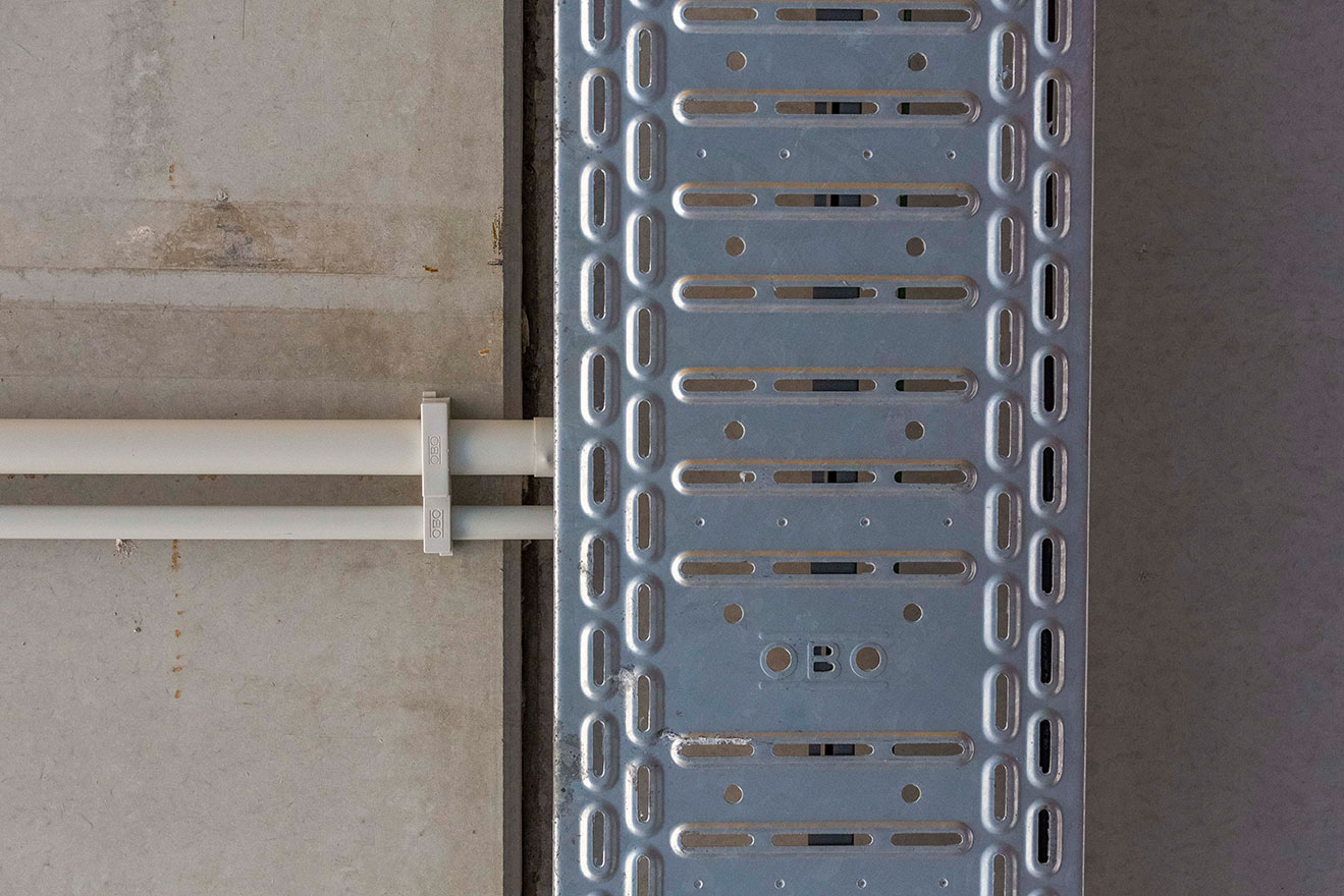 Alle hier gebruikte producten zijn voor het functiebehoud beproefd en toegelaten. De expertise van OBO op het gebied van brandbeveiliging was een doorslaggevende factor bij het toekennen van dit project.