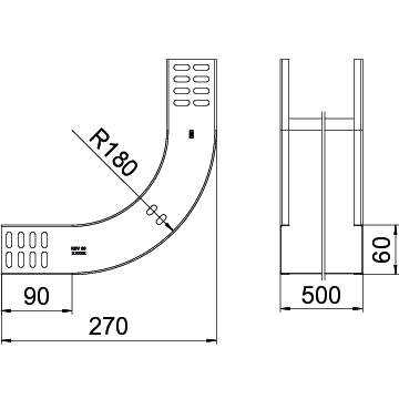 ProductbeschrijvingVerticale bocht 90°, stijgend, voor alle types kabelgoten met een zijhoogte van 60 mm.