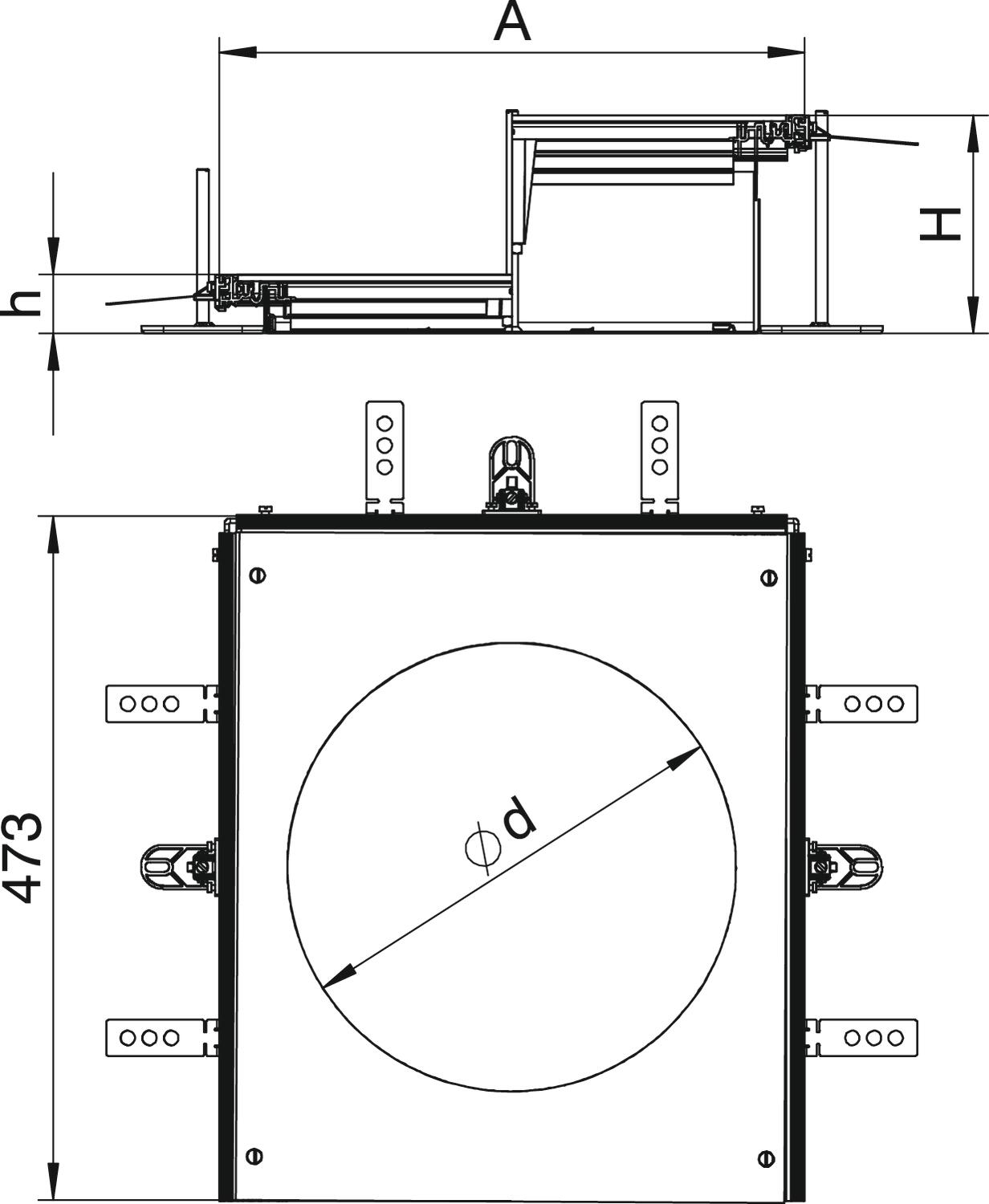 Grootte montage-opening geschikt voor de inbouw van een ronde inbouweenheid met nominale grootte R9 of R9/55.