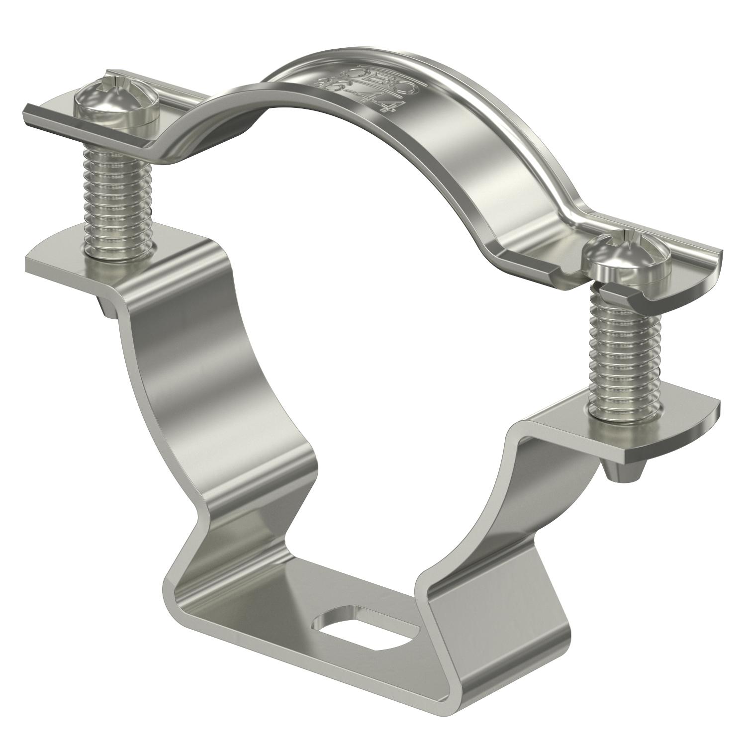 ProductbeschrijvingAfstandsklem voor montage van buizen en kabels aan wand, plafond en vloer. Met zelfsluitende bovenkant. Bevestiging via sleufgat.