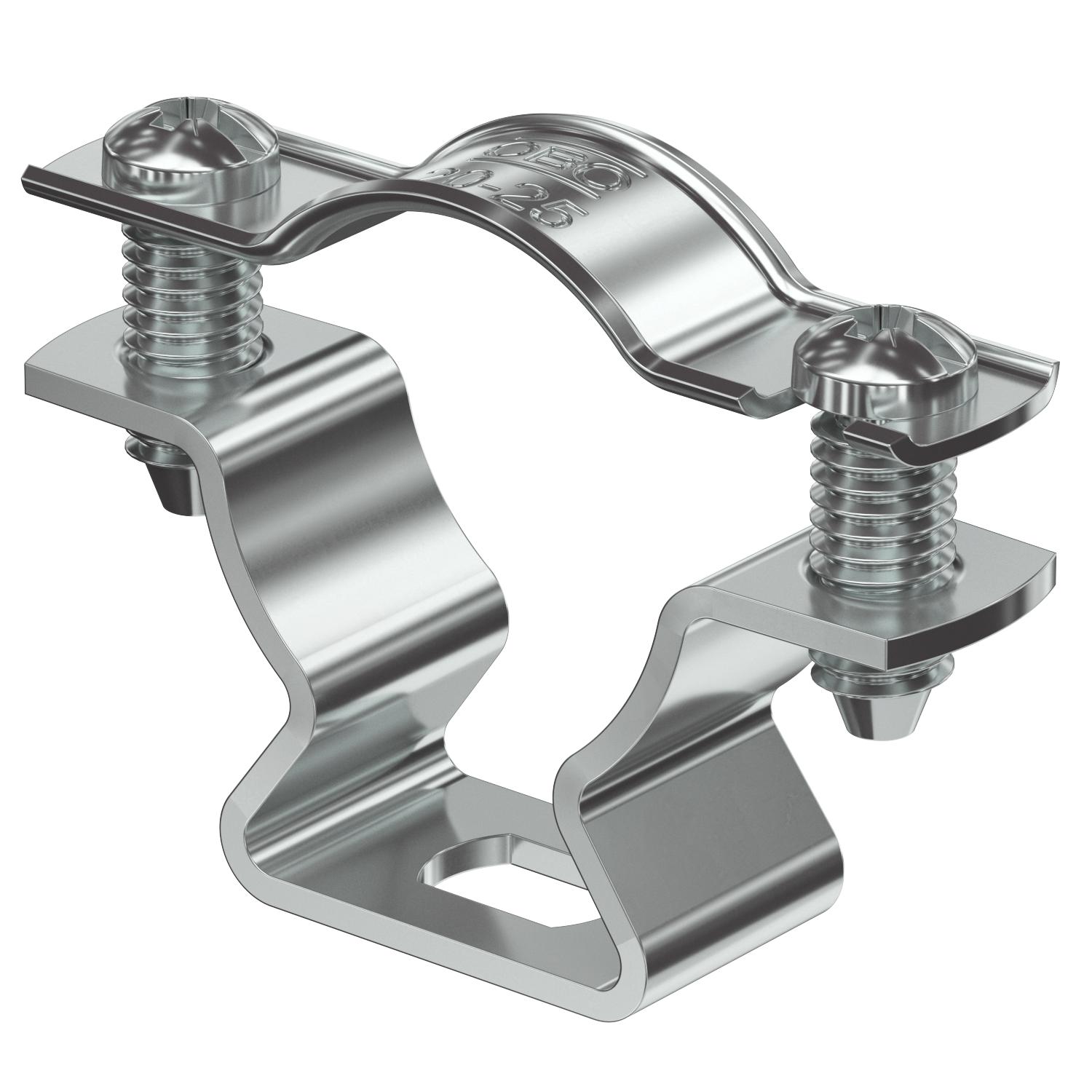 ProductbeschrijvingAfstandsklem voor montage van buizen en kabels aan wand, plafond en vloer. Met zelfborgend deksel. Bevestiging via sleufgat. Vanaf klemgrootte 20 geschikt voor montage met nagelapparaat of boutschietgereedschap.