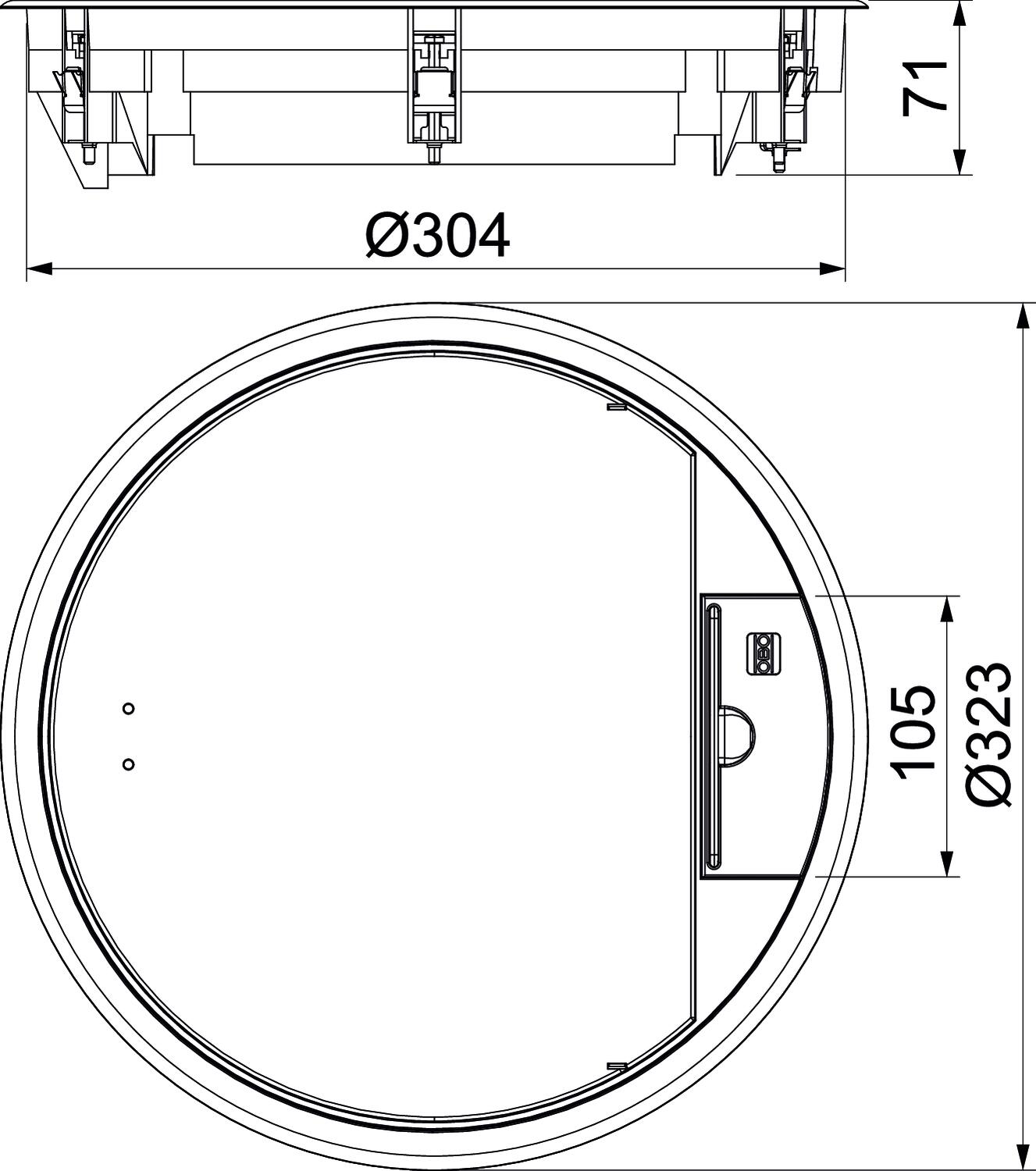 Aantal inbouwbare apparaten 12 Aantal inbouwdozen 3 Afdichtingsinbouwmogelijkheid nee Apparatuurdrager voor opname van inbouwdozen ja Beschermingsgraad (IP) in gebruikte situatie IP20 Beschermingsgraad (IP) in niet gebruikte situatie IP40 Beschermingsgraad IK-code IK10 Beschermraam vloerbekleding ja Buitendiameter 323 mm CO2-voetafdruk (GWP) van wieg tot poort 18,3614 kg CO2e / 1 Stuk Dikte vloerbedekking 10 mm Dimensie Ø323x70 Geschikt voor door afwerkvloer overdekt ondervloerkanaal ja Geschikt voor inbouw in dubbele vloer ja Geschikt voor inbouw in holle vloer ja Geschikt voor nat onderhoud nee Geschikt voor ondervloerkanaal ja Heavy-duty uitvoering nee Inbouwdiameter 305 Inbouwdiepte 78 mm Materiaal Spuitgietaluminium Met uitsparing vloerbekleding ja Nominale maat voor inbouweenheden R9 Openingsmechanisme Handvat Spanbereik D max. 33 mm Spanbereik D min. 3 mm Toelatingen VDE Type inbouwsysteem UT4 Uitvoering rond Verticale last, groot oppervlak tot 5.000 N Verticale last, klein oppervlak tot 3.000 N Vloerhoogte min. 78 mm Vloeronderhoud Droog - Alle typen