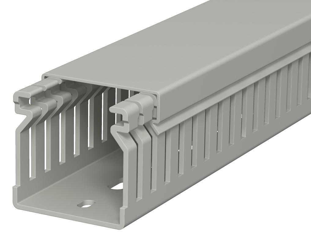 ProductbeschrijvingBedradingskoker incl. deksel en bodemperforatie voor horizontale en verticale installatie van elektrische kabels en leidingen in de schakelkast. Uitvoering als metrisch kanaal. De nominale maat van de systeemgrootte komt overeen met de binnenmaat van de kanalen. De lamellen kunnen zonder gereedschap worden uitgebroken. Uitvoering gelijk met de bodem is mogelijk dankzij vooraf bepaalde breekpunten. Getest conform DIN EN 50085-2-3. Speciale lengte op aanvraag