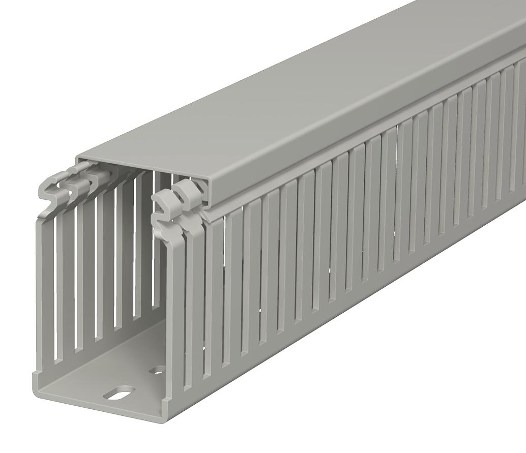 ProductbeschrijvingBedradingskoker conform DIN EN 50085-2-3 incl. deksel en bodemperforatie voor horizontale en verticale installatie van elektrische kabels en leidingen in de schakelkast. Uitvoering als DIN-kanaal. De lamellen kunnen zonder gereedschap worden uitgebroken. Uitvoering gelijk met de bodem is mogelijk dankzij vooraf bepaalde breekpunten. Getest conform DIN EN 50085-2-3. Speciale lengte op aanvraag