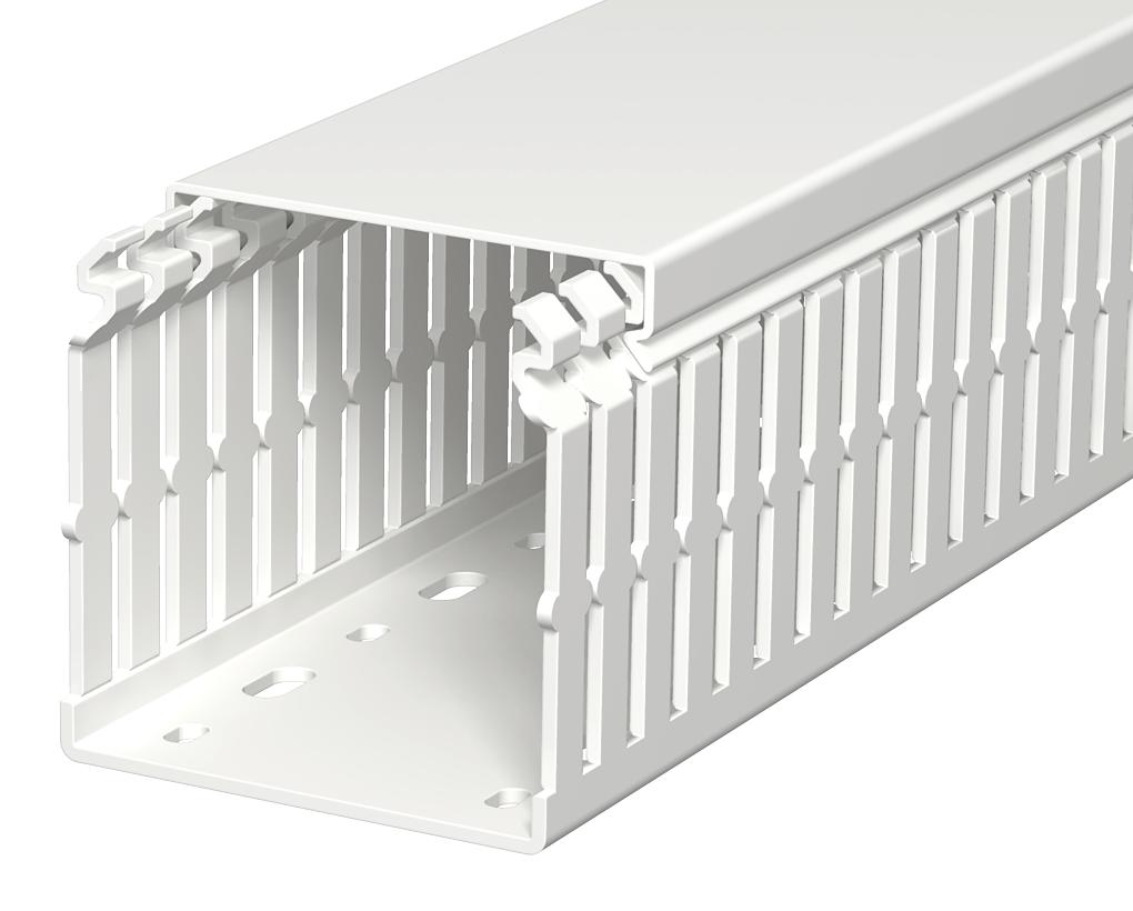 ProductbeschrijvingBedradingskoker conform DIN EN 50085-2-3 incl. deksel en bodemperforatie voor horizontale en verticale installatie van elektrische kabels en leidingen in de schakelkast. Uitvoering als DIN-kanaal. De lamellen kunnen zonder gereedschap worden uitgebroken. Uitvoering gelijk met de bodem is mogelijk dankzij vooraf bepaalde breekpunten. Het taps toelopen van de zijgleuven voorkomen dat de kabels eruit vallen. Getest conform DIN EN 50085-2-3. Speciale lengte op aanvraag
