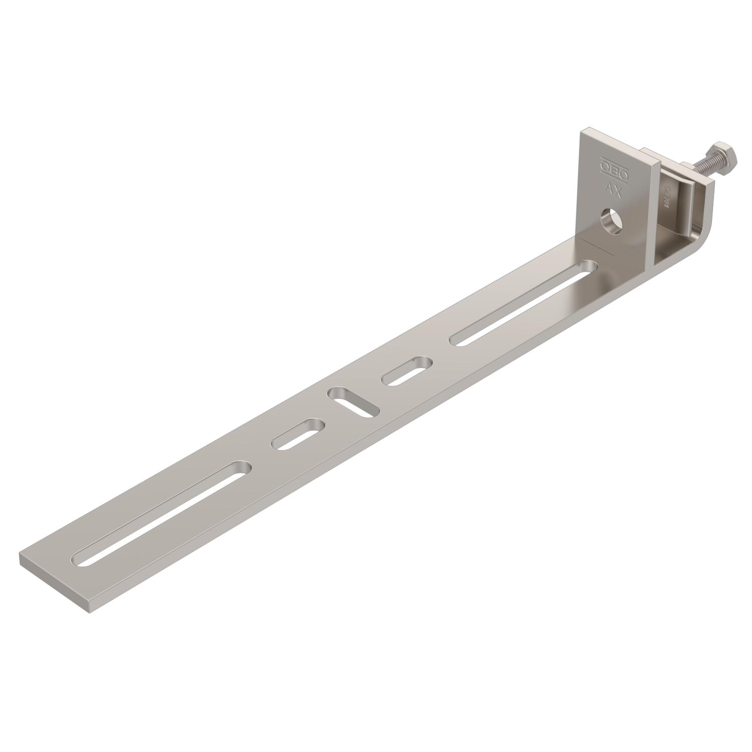 ProductbeschrijvingBefestigungsklemmstück zur Montage von leichten Bauteilen an senkrechten Stahlträgern. Geeignet z. B. für Gitterrinnen und Kabelrinnen bis 300 mm Breite oder Schellen. Der Verlauf des am Befestigungsklemmstück angebrachten Kabeltragsystems ist senkrecht.