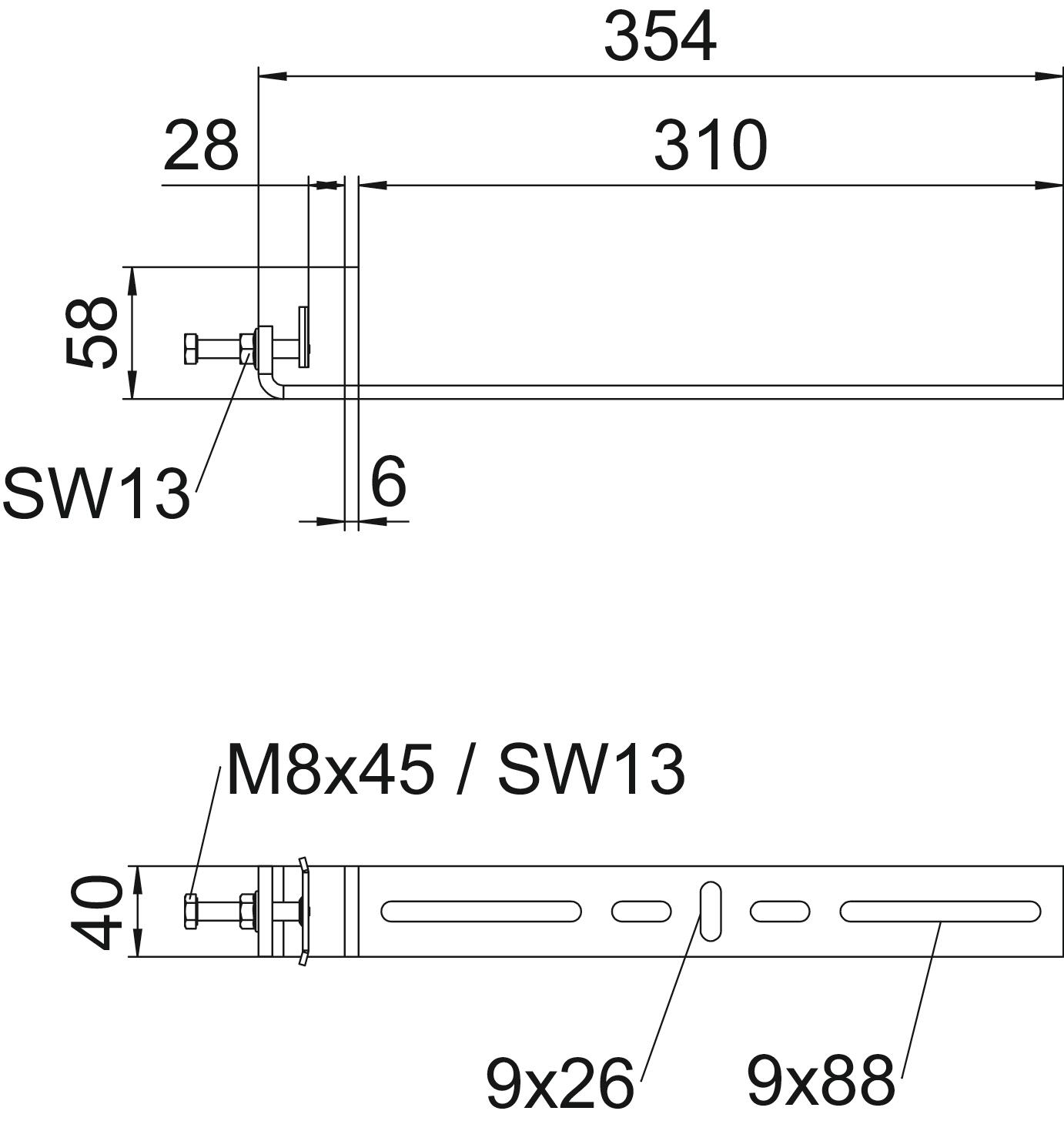 Breedte 310 mm Dimensie 354x58x40 Hoogte 58 mm Kleur roestvrij staal Lengte 348 mm Materiaal Roestvast staal 1.4301 Materiaaldikte 6 mm Oppervlak blank, nabehandeld Reserve onderdeel. nee Soort toebehoren Clamping piece toebehoren ja - Alle typen
