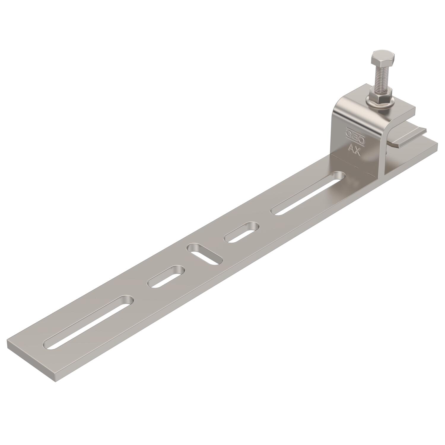 ProductbeschrijvingBefestigungsklemmstück zur Montage von leichten Bauteilen an waagerechten Stahlträgern. Geeignet z. B. für Gitterrinnen und Kabelrinnen bis 300 mm Breite oder Schellen. Der Verlauf des am Befestigungsklemmstück angebrachten Kabeltragsystems ist waagerecht.