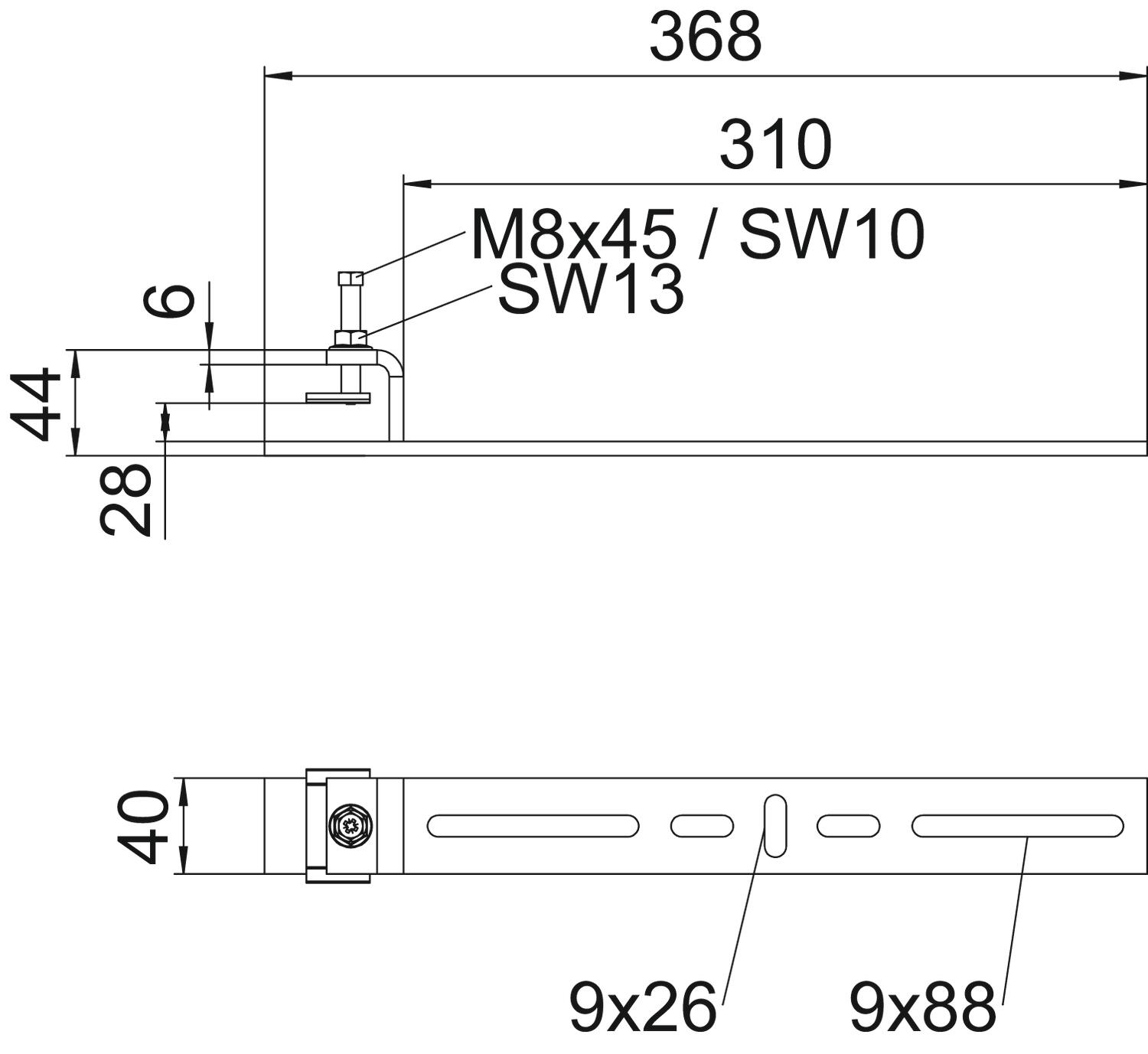 Breedte 310 mm Dimensie 368x44x40 Hoogte 32 mm Kleur zink Lengte 368 mm Materiaal staal Materiaaldikte 6 mm Oppervlak thermisch verzinkt Reserve onderdeel. nee Soort toebehoren Clamping piece toebehoren ja - Alle typen